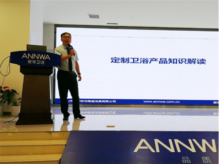 之后,安華衛(wèi)浴定制部主任工程師祝天成先生為大家講解了定制產(chǎn)品知識、屏風(fēng)產(chǎn)品知識。每個家庭衛(wèi)浴空間難免會有大小的限制、風(fēng)格限制,安華衛(wèi)浴為了打破這些種種限制,潛心制作出每一個定制產(chǎn)品,讓您居家更舒心。