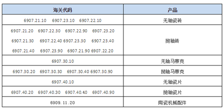 美國政府發(fā)布對華逾2000億美元加征關(guān)稅清單中,包括了HS編碼為6907的陶瓷磚產(chǎn)品。