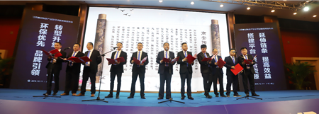 為了強化高安陶瓷轉(zhuǎn)型升級與品牌建設(shè)的信心,此次發(fā)布會還舉行了隆重的“高安陶瓷全球宣言”宣讀儀式。11位高安優(yōu)秀企業(yè)代表在全場嘉賓的注視之下,莊嚴(yán)宣讀了以“環(huán)保優(yōu)先、品牌引領(lǐng)、轉(zhuǎn)型升級、科學(xué)發(fā)展”理念為核心主旨的高安陶瓷品牌宣言,將大會氛圍推向了頂點。