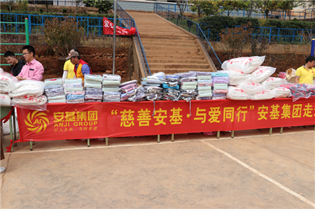 “慈善安基·與愛同行”--安基集團走進大涼山送溫暖愛心捐贈活動于2018年10月12日--16日再度啟動,安基集團愛心小組走進四川大涼山鹽源縣貧困山區(qū),為阿薩小學(xué)、巴折小學(xué)二所小學(xué)合共327名師生捐贈了價值25萬元的溫暖外套、棉被、床墊、枕頭、書籍、作業(yè)本、學(xué)習(xí)用品、教學(xué)用具、體育用品以及音響設(shè)備,和孩子們一起玩耍、學(xué)習(xí),激勵他們懷抱夢想、鼓勵他們用行動創(chuàng)造美好未來,用實際行動為孩子們送去溫暖和快樂,傳遞愛心,播種愛與希望。