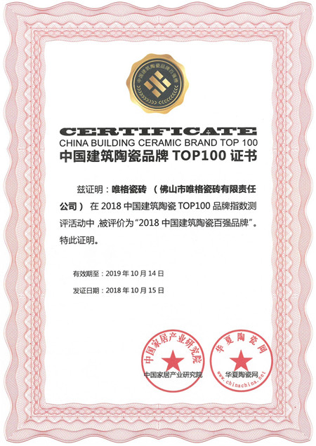砥礪前行|唯格瓷磚獲得“2018中國建筑陶瓷TOP”殊榮