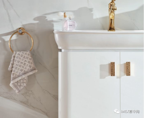 雕工精美的縷金拉手讓純凈地空間多了些靈動,搭配以古典唯美的金龍頭,而這相交呼應,共同為捷恩斯衛(wèi)浴空間增添溫暖。