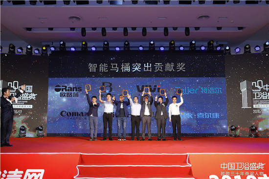 歐路莎衛(wèi)浴、維衛(wèi)智能馬桶、星星便潔寶、西馬智能科技、怡和衛(wèi)浴、特潔爾智能衛(wèi)浴和喜爾康智能衛(wèi)浴等憑借對(duì)中國(guó)智能馬桶行業(yè)做出的突出貢獻(xiàn),共同斬獲了“智能馬桶突出貢獻(xiàn)獎(jiǎng)”。