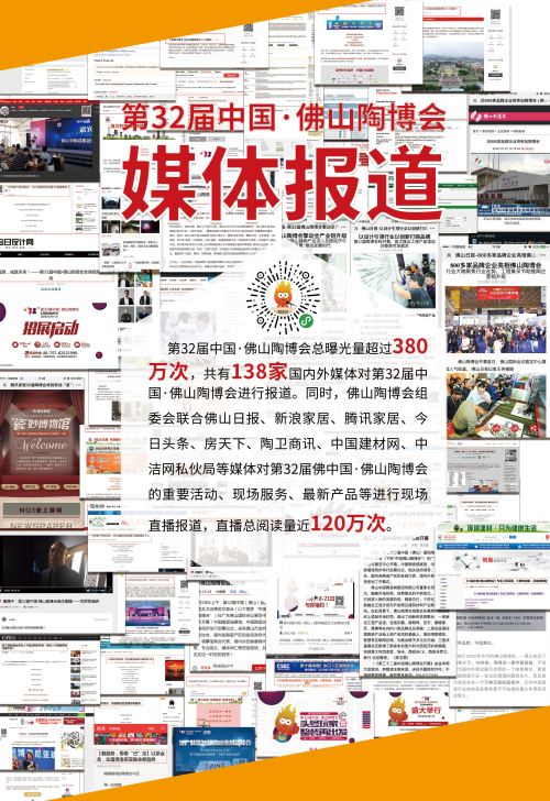 第32屆中國(guó)•佛山陶博會(huì)總曝光量超過(guò)380萬(wàn)次,共有138家國(guó)內(nèi)外媒體對(duì)第32屆中國(guó)•佛山陶博會(huì)進(jìn)行報(bào)道。同時(shí),佛山陶博會(huì)組委會(huì)聯(lián)合佛山日?qǐng)?bào)、新浪家居、騰訊家居、今日頭條、房天下、陶衛(wèi)商訊、中國(guó)建材網(wǎng)、中潔網(wǎng)、私伙局等媒體對(duì)第32屆佛中國(guó)•佛山陶博會(huì)的重要活動(dòng)、現(xiàn)場(chǎng)服務(wù)、最新產(chǎn)品等進(jìn)行現(xiàn)場(chǎng)直播報(bào)道,直播總閱讀量近120萬(wàn)次。