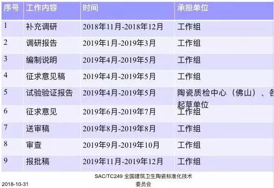 《大規(guī)格陶瓷板》國家標(biāo)準(zhǔn)工作日程表