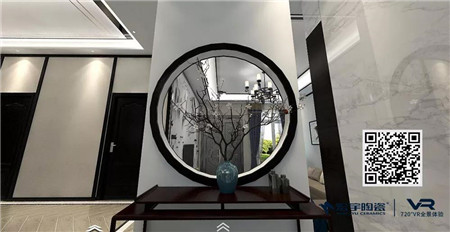 玄關(guān)處圓形屏風前擺放一個花瓶