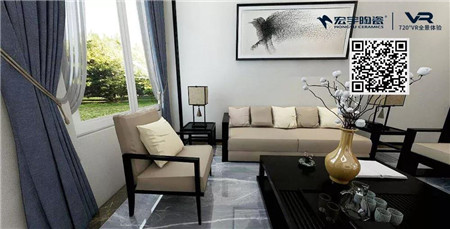 家具選擇以紅木色彩框架為主的布沙發(fā)