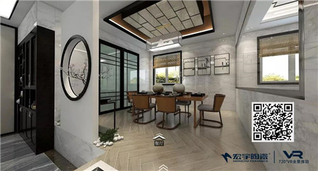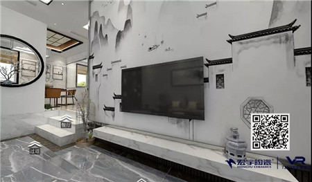 餐廳墻磚采用宏宇陶瓷榮耀大板·山水白