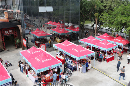 在本次市集現(xiàn)場(chǎng),產(chǎn)品各具特色,有手工制作的布衣飾品、也有小型創(chuàng)意用品、各種產(chǎn)品外形可愛(ài)且設(shè)計(jì)極富創(chuàng)意,吸引了許多觀眾購(gòu)買(mǎi)。此次創(chuàng)意市集的攤位搭建設(shè)計(jì)都突出創(chuàng)意主題,盡顯創(chuàng)意無(wú)限的活動(dòng)宗旨,現(xiàn)場(chǎng)觀眾還可以進(jìn)行互動(dòng),親自動(dòng)手制作扎染作品等。