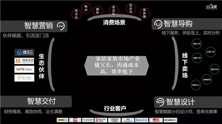 楊總介紹到,三維家智慧門(mén)店系列產(chǎn)品,通過(guò)智慧營(yíng)銷(xiāo)、智慧導(dǎo)購(gòu)、智慧設(shè)計(jì)、智慧交付四智結(jié)合,伙伴賦能,引流至門(mén)店,通過(guò)智慧導(dǎo)購(gòu)和智慧設(shè)計(jì)提高門(mén)店的轉(zhuǎn)化率和簽單率,然后利用智慧交付實(shí)現(xiàn)交付的一個(gè)過(guò)程,賦能家居建材企業(yè)整裝落地。