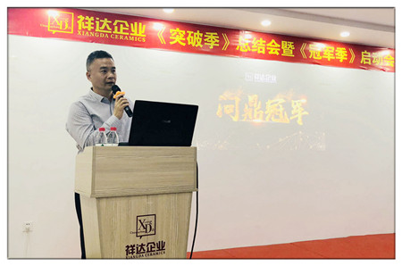 企業(yè)董事長(zhǎng)蘇紹恒在最后的總結(jié)發(fā)言中,首先對(duì)大家在上階段工作中取得的成績(jī),付出的努力表示由衷的祝賀和感謝。蘇董表示,2018年陶瓷行業(yè)經(jīng)歷了一場(chǎng)前所未有的寒冬,在這樣的大環(huán)境下,企業(yè)10月份的銷售業(yè)績(jī)創(chuàng)下歷史新高,這與全體祥達(dá)人的拼搏努力是密不可分的,面對(duì)即將到來(lái)的2019年,市場(chǎng)環(huán)境仍然不容樂(lè)觀,我們要做好充分的準(zhǔn)備和各項(xiàng)部署,迎接新挑戰(zhàn),實(shí)現(xiàn)新突破,創(chuàng)造新成績(jī)。