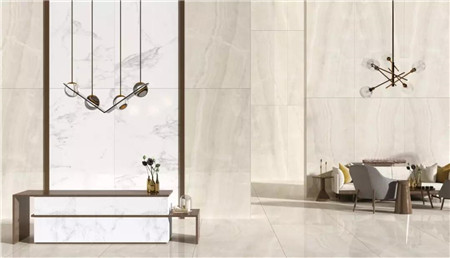 卡莫大板運用干法干粒技術,精選超白環(huán)保新材料,并在1200℃的高溫中煅燒,磚面通透感更強,色澤通透潤白,高強度高韌性。