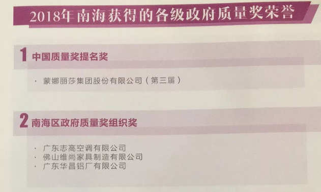 南海區(qū)第二屆政府質(zhì)量獎頒獎,蒙娜麗莎榮獲中國質(zhì)量獎提名獎