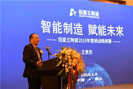廣東冠星陶瓷企業(yè)營(yíng)銷總經(jīng)理王貴蘇在會(huì)上作出了以《智能制造 賦能未來》的主題演講。
