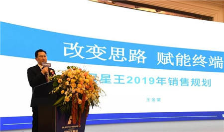 接著,冠星王陶瓷銷售總經(jīng)理王金堂作出了《改變思路 賦能終端》的主題講話。王總提到,2018年冠星王陶瓷終端涌現(xiàn)一批優(yōu)秀的經(jīng)銷商,他們緊跟品牌策略,對(duì)店面進(jìn)行全面升級(jí),展現(xiàn)出現(xiàn)代、時(shí)尚、簡(jiǎn)約的品牌面貌,讓冠星王在市場(chǎng)上保持競(jìng)爭(zhēng)優(yōu)勢(shì);并對(duì)2019年的銷售計(jì)劃做了總體性的規(guī)劃,在2019年將利用省會(huì)城市的影響力,以大中城市為核心,“區(qū)域中心倉(cāng)”為突破口,加快搭建銷售網(wǎng)絡(luò)大框架,把冠星王打造成當(dāng)?shù)刂放疲瑤?dòng)區(qū)域經(jīng)銷商共同提升。借助冠星企業(yè)環(huán)保式、花園式工業(yè)園以及智能化倉(cāng)儲(chǔ)中心的落成,攜手全國(guó)經(jīng)銷商朋友共同前行,互利共贏,全力推動(dòng)冠星王陶瓷品牌邁向新高度。