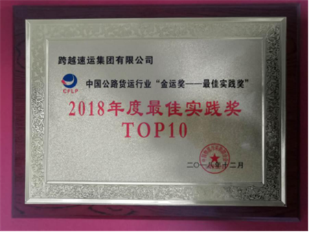 在中國物流與采購聯(lián)合會(huì)公路貨運(yùn)分會(huì)開展的2018年度中國公路貨運(yùn)行業(yè)“金運(yùn)獎(jiǎng)”——“最佳實(shí)踐獎(jiǎng)”評選活動(dòng)中,跨越從80多家知名物流企業(yè)中脫穎而出,榮獲中國公路貨運(yùn)行業(yè)“金運(yùn)獎(jiǎng)”最佳實(shí)踐獎(jiǎng)。
