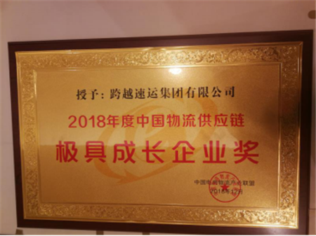 時(shí)隔不久,再傳捷報(bào)!在歷時(shí)3個(gè)月的2018年度電商物流獎(jiǎng)項(xiàng)評選活動(dòng)中,跨越榮獲中國電商物流產(chǎn)業(yè)聯(lián)盟頒發(fā)的2018年度中國物流供應(yīng)鏈極具成長企業(yè)獎(jiǎng)。
