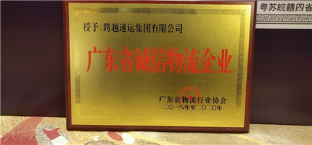 跨越速運(yùn)——廣東省誠信物流企業(yè)獎(jiǎng)