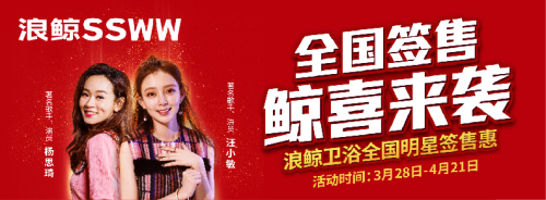 鯨喜來襲,精彩不斷,從3月28日到4月21日,浪鯨衛(wèi)浴全國終端門店及線上電商平臺助力421全國明星簽售惠,多重福利等著你: