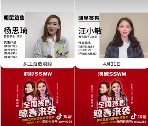 近日,關(guān)于浪鯨衛(wèi)浴攜手著名歌手、演員楊思琦和汪小敏進(jìn)行全國明星簽售惠的兩條短視頻在抖音短視頻平臺火速刷屏,4月21日,浪鯨衛(wèi)浴全國明星簽售惠盛大啟動,屆時,楊思琦、汪小敏將與大家相約浪鯨衛(wèi)浴線下門店,跟大家約“惠”啦。