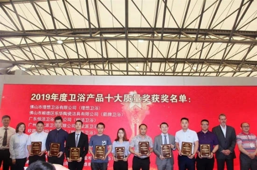 在啟動儀式上,同期舉辦了2019年度衛(wèi)浴產(chǎn)品十大質(zhì)量獎頒獎典禮。其中理想衛(wèi)浴、箭牌衛(wèi)浴、恒潔衛(wèi)浴、歐派衛(wèi)浴、歐路莎衛(wèi)浴、浪鯨衛(wèi)浴、安華衛(wèi)浴、心海伽藍(lán)衛(wèi)浴、金柏麗雅和維娜斯衛(wèi)浴獲得本年度十大質(zhì)量獎。中國建材流通協(xié)會陶瓷衛(wèi)浴經(jīng)銷商委員會主席李作奇、佛山市質(zhì)量管理協(xié)會秘書長喻永健、上海市浦東新區(qū)質(zhì)量技術(shù)協(xié)會康燕紅部長為獲獎企業(yè)頒獎。各企業(yè)代表紛紛表示,質(zhì)量是企業(yè)的生存的根基,今后企業(yè)會更加努力,為中國衛(wèi)浴的發(fā)展添磚加瓦,助力中國衛(wèi)浴走向國際化。