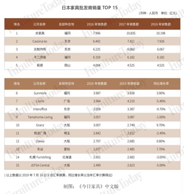 日本家具批發(fā)商TOP15榜單出爐!第一名年銷售10億人民幣