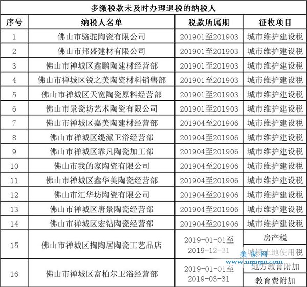 其中,有多家陶瓷、衛(wèi)浴公司、經(jīng)營部、門店尚未辦理退稅。