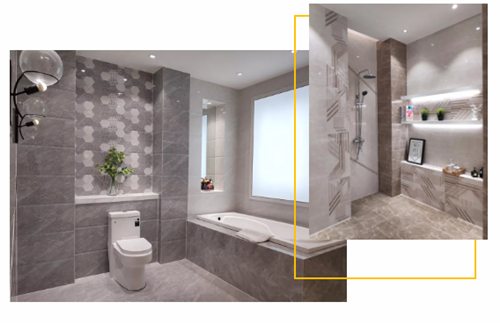 內(nèi)墻磚的個性化不僅僅體現(xiàn)在色彩圖案,更重要的是工藝上的突出,在色釉料中融入納米級載銀磷酸鈣粒子,憑借銀離子的吸污特性,采用納米不透水技術(shù)、從而實現(xiàn)了產(chǎn)品功能性不滲水、不滲污等性能。