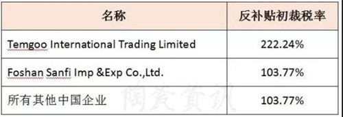 就在此前的9月9日,美國瓷磚反補貼調(diào)查的初步結(jié)果公布:天古國際貿(mào)易有限公司(TEMGOO)反補貼稅率:222.24%,佛山興輝進出口有限公司(FOSHAN SANFI)稅率為103.77%,其他所有中國瓷磚企業(yè)反補貼稅率為103.77%。