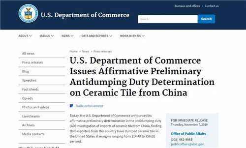 最高傾銷幅度356.02%!美對華瓷磚反傾銷初裁結(jié)果公布
