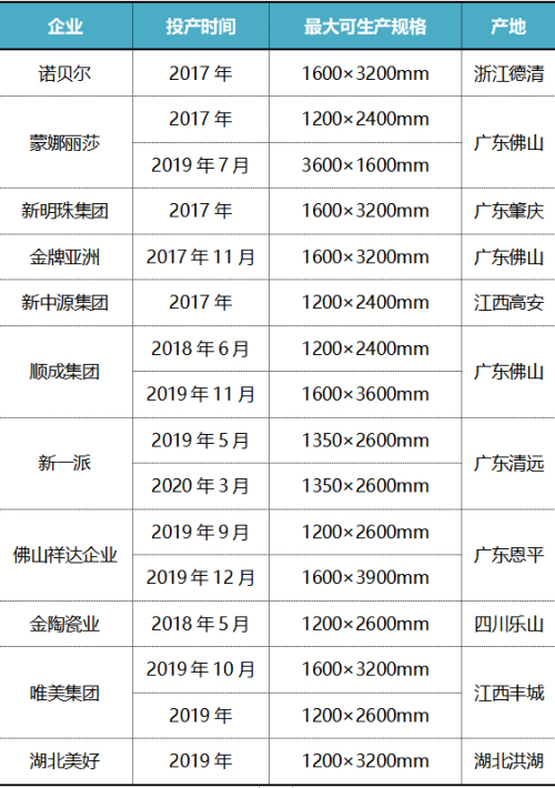 國內(nèi)大巖板生產(chǎn)線最新統(tǒng)計 2020年或超30條