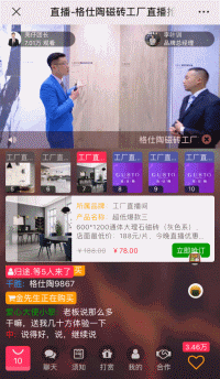 直播過程中,網(wǎng)紅主播跟粉絲們積極互動,客服實時疑難解答,更有格仕陶市場部經(jīng)理顏小華帶領(lǐng)大家通過高清攝像頭,全方位近賞時尚展廳與精美瓷磚,省掉一切中間環(huán)節(jié),廠門直對家門,讓觀眾購磚省時省力更省心。
