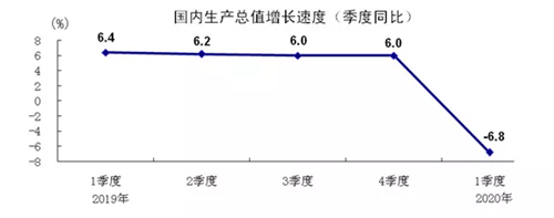 一季度GDP同比增長-6.8%,是我國有數(shù)據(jù)記錄以來的首度負增長。