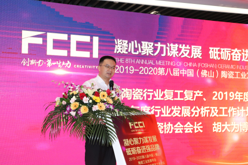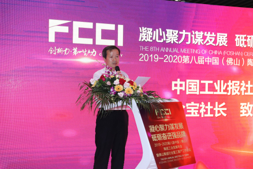 中國工業(yè)經(jīng)濟聯(lián)合會執(zhí)行副會長路耀華先生、中國工業(yè)報社社長徐金寶先生、佛山市市委統(tǒng)戰(zhàn)部副部長徐彥林等領(lǐng)導(dǎo)為會議致辭,東鵬執(zhí)行董事鐘保民、金意陶集團副總經(jīng)理兼瓷磚事業(yè)部總經(jīng)理侯波作現(xiàn)場行業(yè)高質(zhì)量發(fā)展重點工作報告,禪城陶瓷協(xié)會會長胡大為博士就復(fù)工復(fù)產(chǎn)、協(xié)會2019工作總結(jié)及2020工作報告。