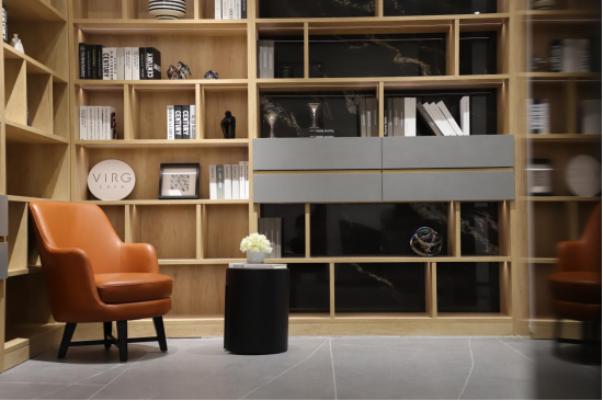 疫情過后,作為第一個(gè)恢復(fù)線下舉辦的佛山陶博會,其觀展人數(shù)預(yù)計(jì)將會突破往屆。在逛了大大小小展廳幾個(gè)小時(shí)的路程后,能找到一個(gè)讓人放松歇息的地方是無比幸福的事情。VIRG CASA,源自意大利,更注重人性化、舒適度,一直推崇人性化與舒適度的空間設(shè)計(jì),追求人與空間的和諧共處。這次將“巖作”兩大新系融入到營銷中心二樓空間中,將會是一個(gè)更適合觀展人打卡和停留的一個(gè)歇息之處。