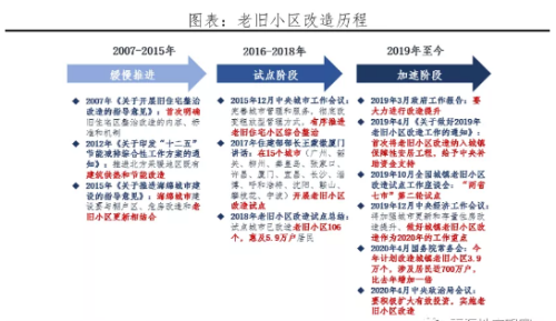 后疫情時(shí)代經(jīng)濟(jì)復(fù)蘇,想必是政策先行。2020年政府工作報(bào)告中指出,國內(nèi)具有一定潛力,今年及下一階段要堅(jiān)定實(shí)施擴(kuò)大內(nèi)需戰(zhàn)略,要繼續(xù)推動(dòng)消費(fèi)回升。會(huì)議強(qiáng)調(diào),其中要積極擴(kuò)大有效投資,實(shí)施老舊小區(qū)改造。老舊小區(qū)改造順應(yīng)了人們對(duì)美好生活的追求,是改善居民居住條件、擴(kuò)大內(nèi)需的重要舉措。據(jù)悉,2020年上半年共下達(dá)老舊小區(qū)改造資金847.43億元(其中,保障性安居工程補(bǔ)助資金304.43億元、中央預(yù)算內(nèi)投資543億元)。