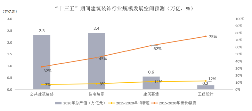 據(jù)數(shù)據(jù)顯示,我國(guó)公裝市場(chǎng)規(guī)模逾2萬(wàn)億元。在增量市場(chǎng)持續(xù)增長(zhǎng),存量市場(chǎng)不斷釋放的雙重刺激下,行業(yè)產(chǎn)值增速持續(xù)維持在8%上下。據(jù)估算,2020年公共建筑裝修的產(chǎn)值將突破2.3萬(wàn)億元。
