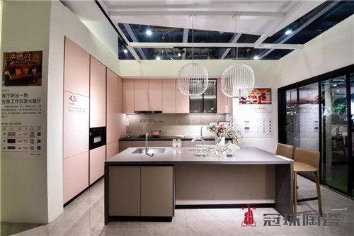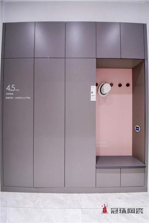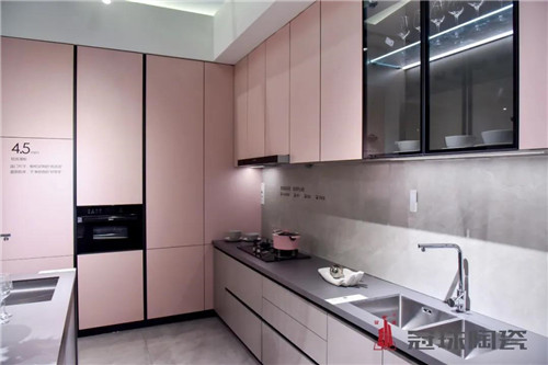 粉色柜面由冠珠悅色巖板制作,4.5mm輕薄厚度,為櫥柜結(jié)構(gòu)減負(fù),2400x800mm的專屬規(guī)格,更適合柜門裝飾定制。