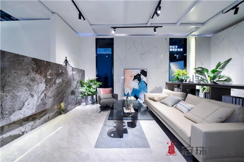 客廳墻面和地面用的是冠珠境界石,擁有降解甲醛、清新空氣的功能,1500X750mm的規(guī)格更適合小戶型洋房的裝修。