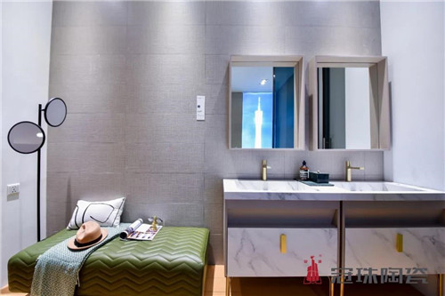衛(wèi)浴區(qū)墻地用的是冠珠陶瓷的素色時光系列,布紋質(zhì)感,吸水率低,打造防水防污的清爽空間!