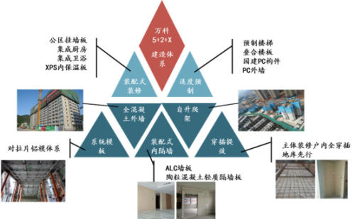 萬科5+2+X建造體系中,2指的就是裝配式裝修和適度預制。其裝配式裝修包括高精度結構地面+薄貼磚、公區(qū)掛墻板、集成廚房、集成衛(wèi)浴、XPS內保溫板、水管走天花)等。適度預制包括預制樓梯及梯段隔板、疊合樓板、園建pc構件、pc外墻等等。增值提效、控制成本,發(fā)揮空間變大了。