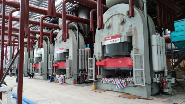 該A線項(xiàng)目含恒力泰4臺(tái)YP8890自動(dòng)液壓機(jī)、德力泰一條工業(yè)“4.0能效標(biāo)桿數(shù)智時(shí)代”天然氣寬體燒成窯(W3100/L392.7M)、一條EM系列六層高效自循環(huán)干燥器和釉線干燥器等全套高性能熱工裝備。