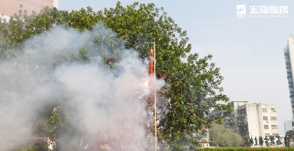 上午八點(diǎn),宏陶陶瓷全體員工準(zhǔn)時(shí)來到公司,互相致以新年的祝福。彼此間的問候帶來陣陣歡聲笑語,喜慶祥和的氣氛縈繞在旁。鞭炮隆隆、開工大吉,響徹云霄的鞭炮聲寓意著宏陶陶瓷新年新發(fā)展的美好愿景,也預(yù)示著宏陶陶瓷迎來牛年的開門Hong。