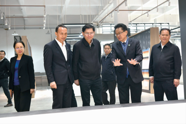 2021年1月5日上午,廣西壯族自治區(qū)代主席藍(lán)天立到梧州調(diào)研,期間深入藤縣中和陶瓷工業(yè)園,在集團(tuán)董事張旗康、總裁蕭禮標(biāo)、廣西蒙娜麗莎總經(jīng)理蕭志強(qiáng)等人的陪同下,認(rèn)真查看了基地生建設(shè)情況,為廣西蒙娜麗莎高標(biāo)準(zhǔn)建設(shè)藝術(shù)化、綠色化、智能化的樣榜工廠點贊。