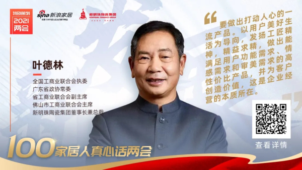 3月4日、5日,全國人民政治協(xié)商會議和全國人民代表大會陸續(xù)在北京開幕,中國進(jìn)入了“兩會”時間。作為建陶行業(yè)轉(zhuǎn)型升級的標(biāo)志性企業(yè),新明珠陶瓷集團(tuán)一直在以自己的力量為我國經(jīng)濟(jì)社會發(fā)展做貢獻(xiàn)。“兩會”來臨,新明珠陶瓷集團(tuán)董事長兼總裁葉德林說了一些自己真心話。