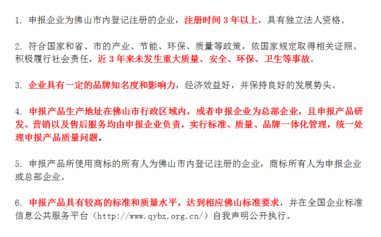 ▲佛山標(biāo)準(zhǔn)產(chǎn)品申報(bào)條件
