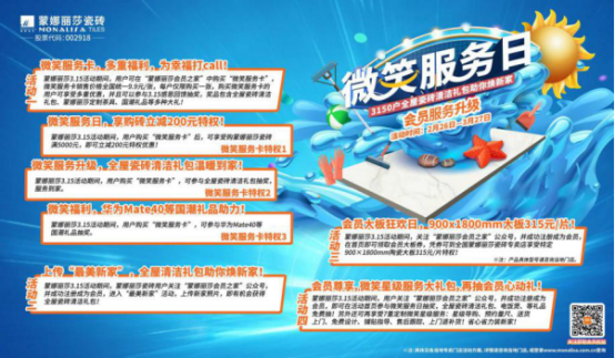 期盼著春天的到來(lái),花在客廳盛開(kāi),世界又開(kāi)始繽紛起來(lái)。窗外微風(fēng)徐徐,蒙娜麗莎315微笑服務(wù)日的腳步也漸漸輕快,將微笑服務(wù)大禮包帶到每家每戶。