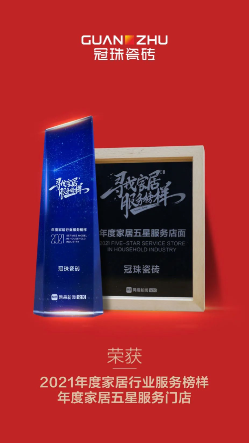 近日,“2021網(wǎng)易家居315服務(wù)調(diào)查”發(fā)布瓷磚類綜合得分TOP榜,冠珠瓷磚憑借金冠服務(wù)體系、線上線下門店的出色表現(xiàn)、及優(yōu)質(zhì)產(chǎn)品脫穎而出,榮獲“2021年度家居行業(yè)服務(wù)榜樣”和“年度家居五星服務(wù)門店”榮譽(yù)。