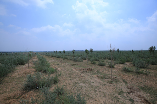 自2006年起至今,特地每年都在這戈壁灘上種上植被,計(jì)劃開(kāi)辟的6000畝“特地綠墾基地”綠化工程,經(jīng)過(guò)十五年不間斷的不懈努力,已全部種上植被并擴(kuò)大到萬(wàn)畝規(guī)模。特地“綠墾基地低碳林”已成為內(nèi)蒙古乃至華北地區(qū)的一道綠色屏障。