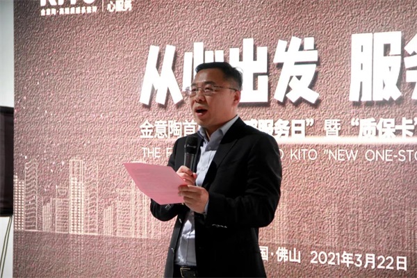 侯波在發(fā)言中表示,從2019年開始,金意陶就通過總結(jié)提煉,初步推動了金意陶服務品牌“心服務”的落地。今年,金意陶在心服務的基礎上,做了一個全新升級,重磅推出“心服務·質(zhì)?”,持有“心服務質(zhì)?”的消費者可享受金意陶提供的“四保障”與“五服務”。本次質(zhì)?ǖ陌l(fā)布,旨在解決用戶痛點問題:一,建立與用戶的全面鏈接。通過質(zhì)?ㄐ〕绦蜻@一工具,建立用戶、經(jīng)銷服務商、品牌總部三方的信息鏈接,促進三方鏈接和互動;其二,推出質(zhì)?。進一步夯實“心服務”,提升質(zhì)保承諾力度。在嚴格按照國家質(zhì)量標準以及企業(yè)標準前提下,為客戶提供四大保障,包括十年質(zhì)保服務,這在行業(yè)應該是第一家。其三,質(zhì)?ň褪墙鹨馓蘸陀脩舻拈L期“結(jié)婚證”,是經(jīng)營的開始,想客戶之所想,以心換心,企業(yè)才能立于未來。作為品牌總部,必須由圍繞經(jīng)銷商的經(jīng)營體系向圍繞終端“用戶”的經(jīng)營體系轉(zhuǎn)型。